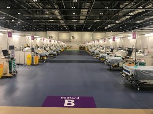 The first temporary NHS Nightingale hospital, at ExCeL London, can house approximately 4000 intensive care beds along with the associated ancillary areas required to run such beds.